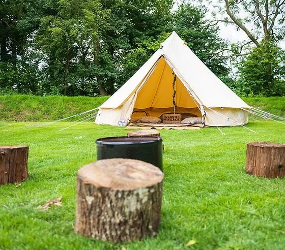 We have 10 fully furnished bell tents available for our retreat at Holmsted Himalayas. They are equipened with nearly everything you need for a relaxing little break, without the need to bring anything.