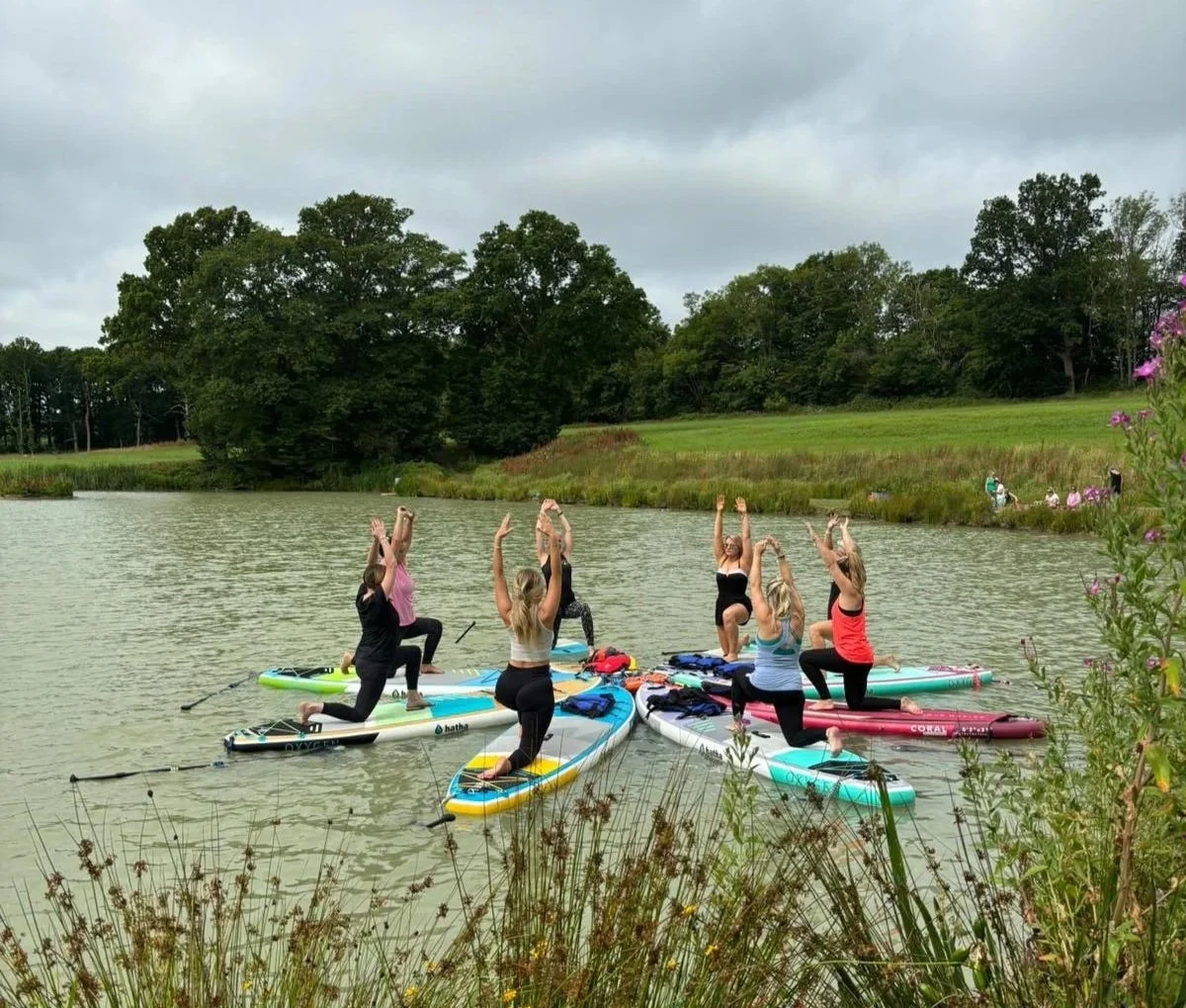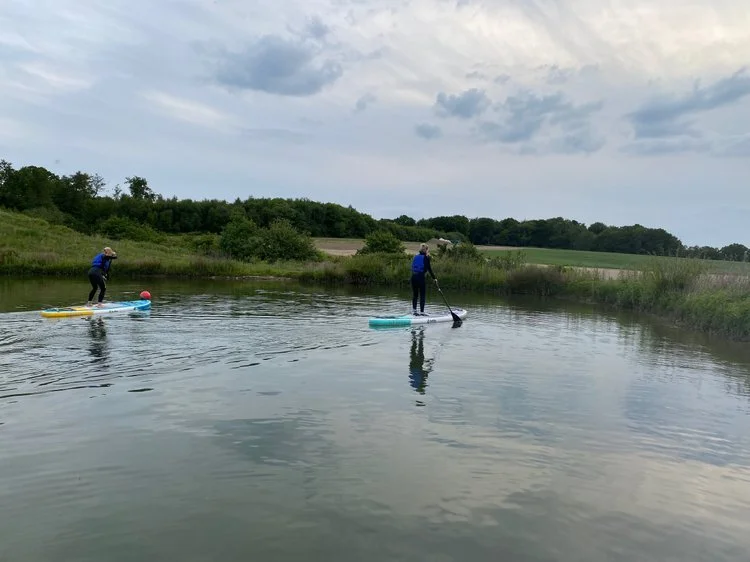 Elevate your practice with SUP Yoga, a unique blend of yoga practice and the tranquil beauty of being on the water. Set on a peaceful private lake, your paddleboard becomes your floating platform, gently moving beneath you and enhancing every movement.This immersive experience challenges your balance and core strength while encouraging focus, presence and a deeper connection to your surroundings. The subtle rhythm of the water brings a natural sense of calm, allowing you to fully switch off and reset.The highlight of each session is a deeply restorative floating Savasana, where you can completely unwind as you drift gently, surrounded by the soothing sounds of nature.
